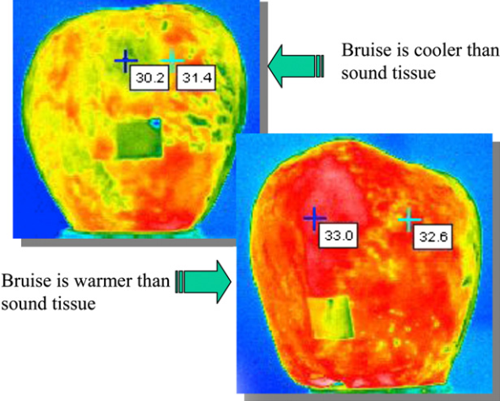 图为红色美味苹果的红外热像图