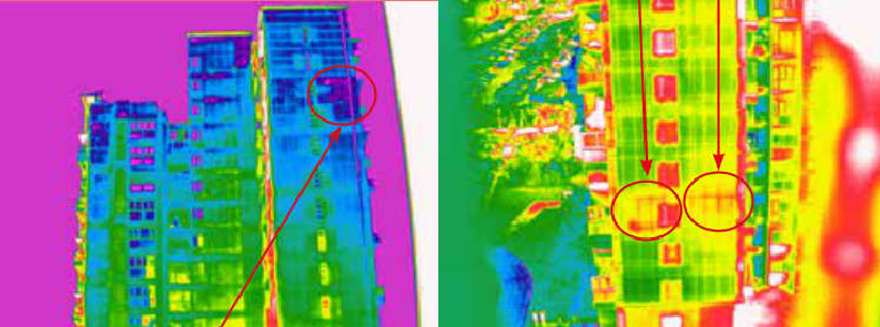 红外热像仪对建筑业来说是非常得力的助手,合理使用热像仪体现温差这一功能,能有效地检测出建筑空鼓、渗漏等质量上的一系列问题,使用表面测试的方法,也不会对建筑本身造成任何损伤。 所谓建筑的空鼓,是墙体结构有较大的热容量。 如果抹面材料有剥落,外墙和建筑主体之间的热传导则随之变小。 通常,当暴露阳光下和高温气候时,建筑外墙表面的温度升高,剥落部位的温度也相应比正常部位的温度高。 由于被检测的建筑温差体现非常小且检测距离较远,使用人工排查的方法通常容易发生误判和漏判等行为。 因此,采用红外热像仪则完美的解决了这一系列问题。